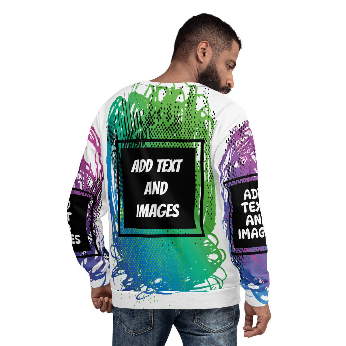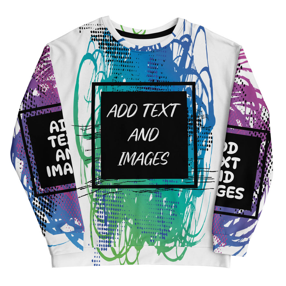 Crafted from a cotton-like recycled fabric with a plush brushed fleece lining, it's the kind of material that feels great against your skin. The entire surface is yours to customize, making it perfect for turning your wildest creative ideas into wearable art.