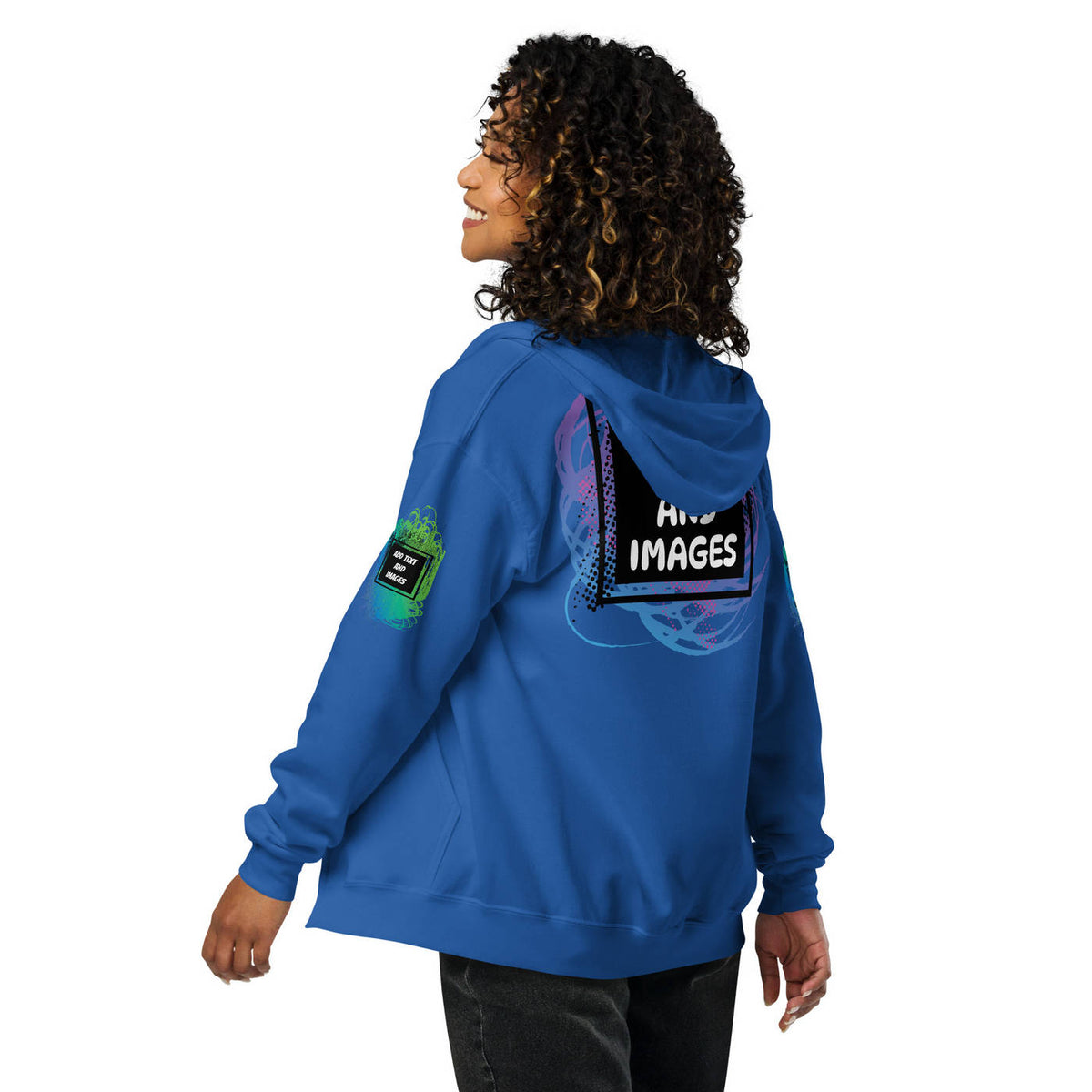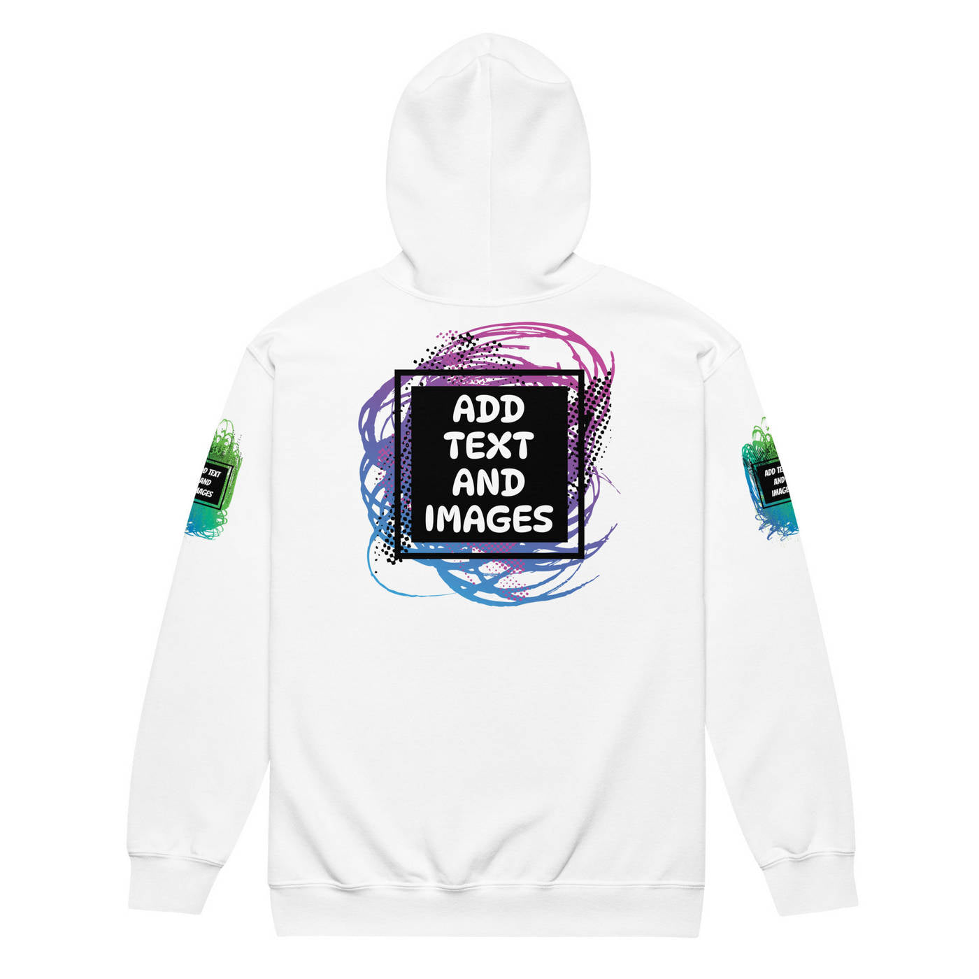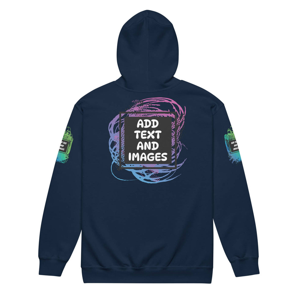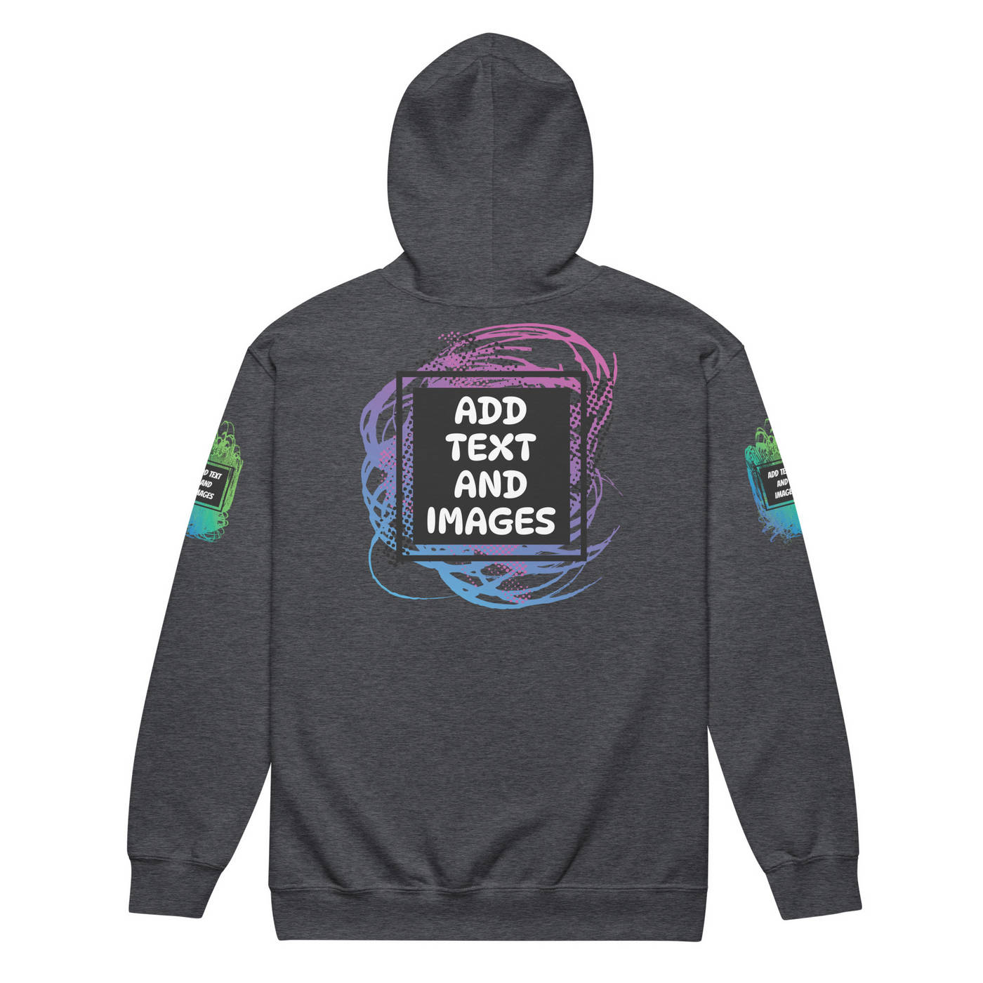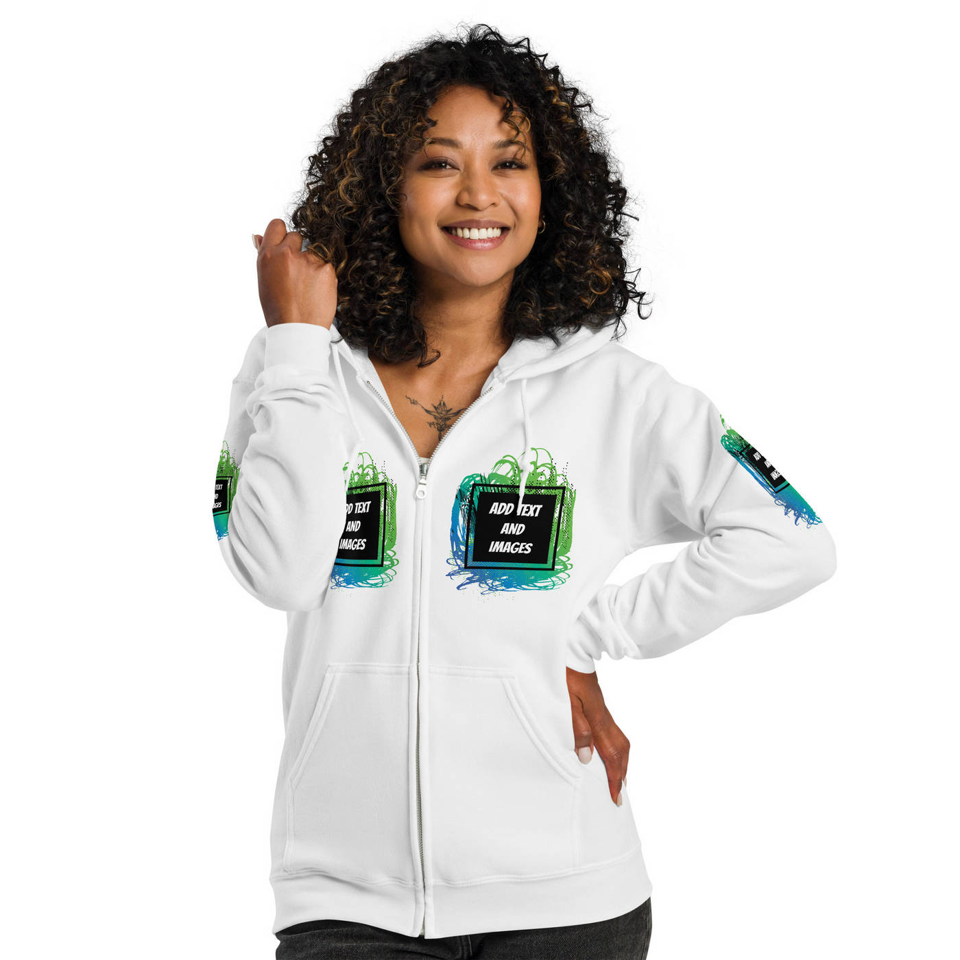 Be comfy and hip when you design your own Unisex Everyday Heavy Blend™ Full-Zip Hooded Sweatshirt from Gildan. Add graphics and text to the front, back and sleeves for the most custom zip-up hoodie out there.