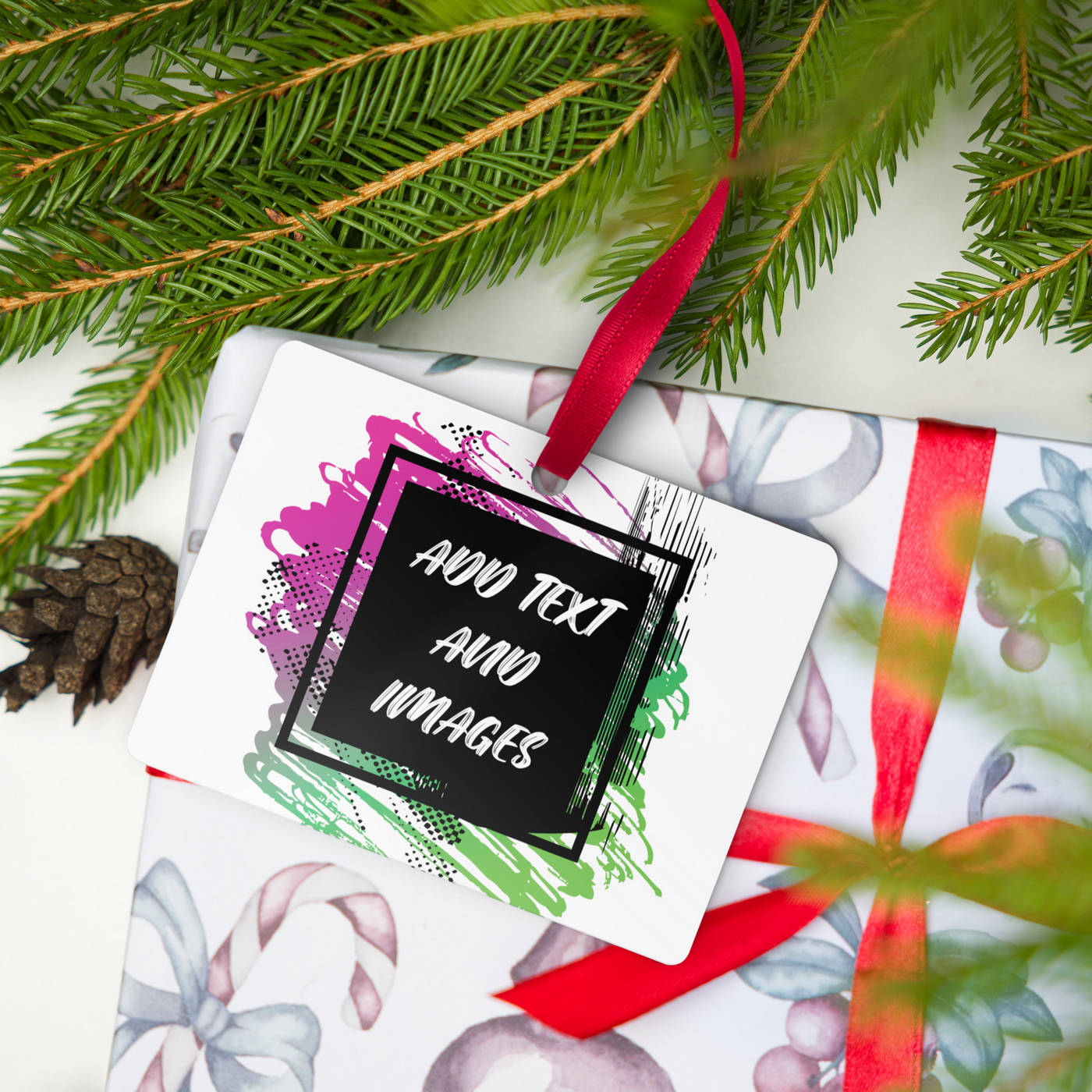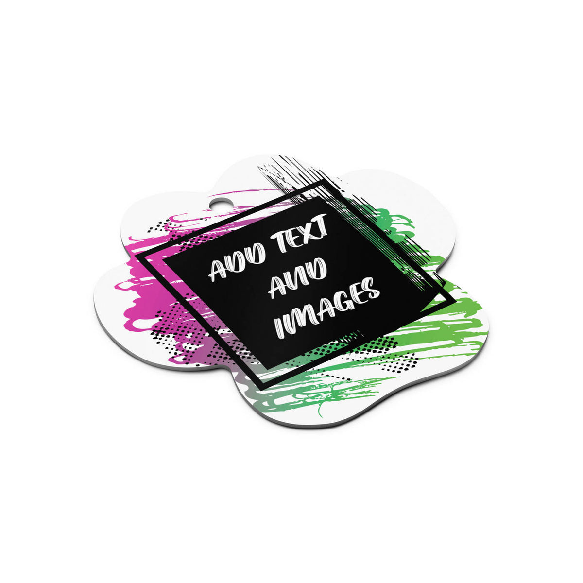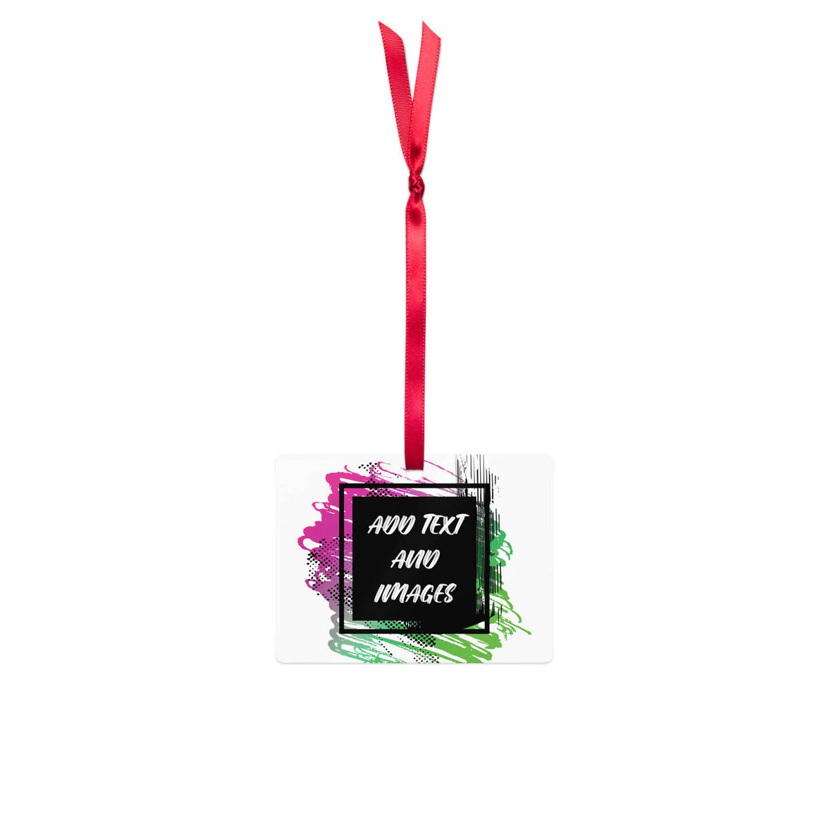Designed to keep their shape and bright colors year after year, each ornament shows lively double-sided prints and includes a red ribbon for effortless hanging. Pick from four playful shapes—Rectangle, Scalloped, Pet Paw, and Tag—or mix and match them all to create a joyful collection.
