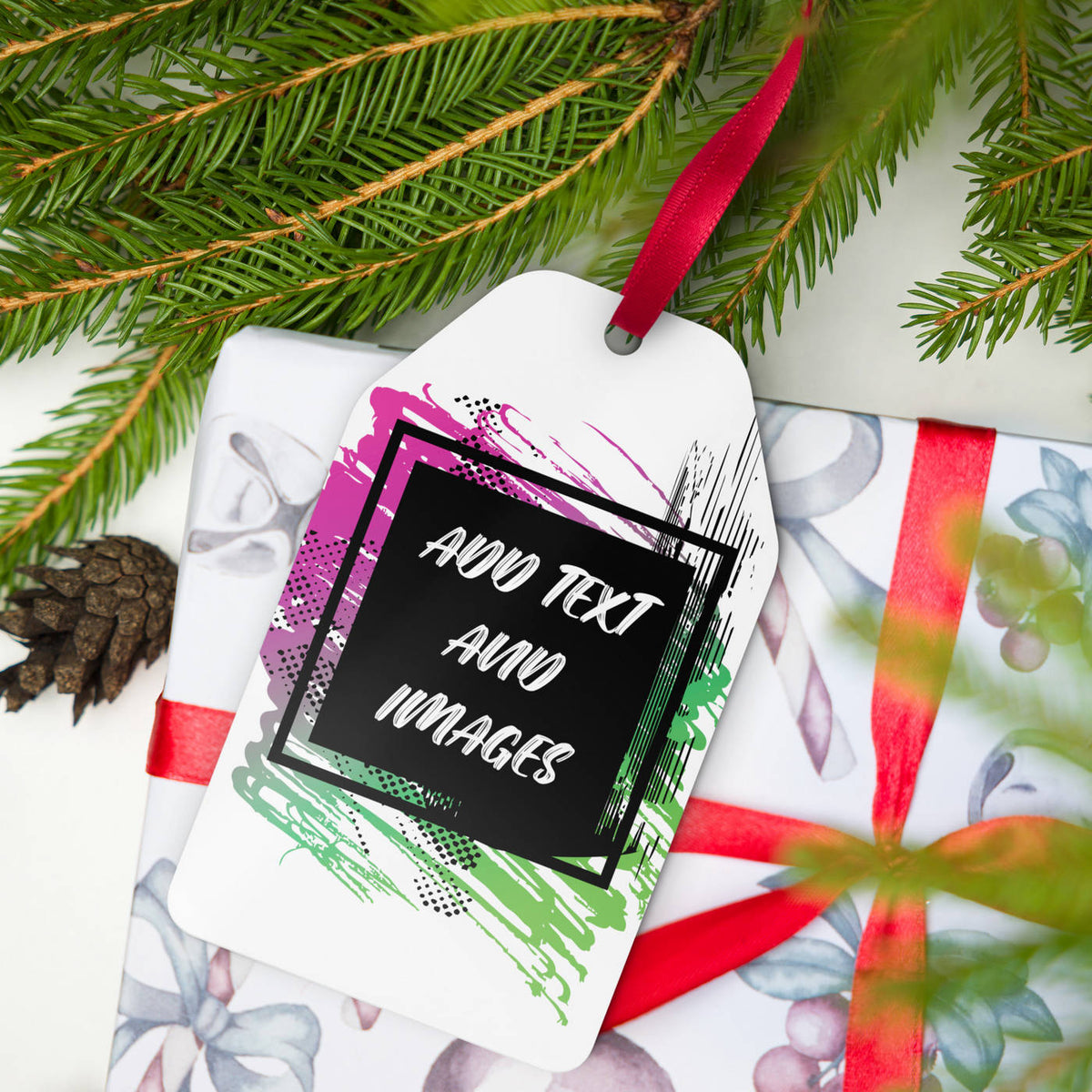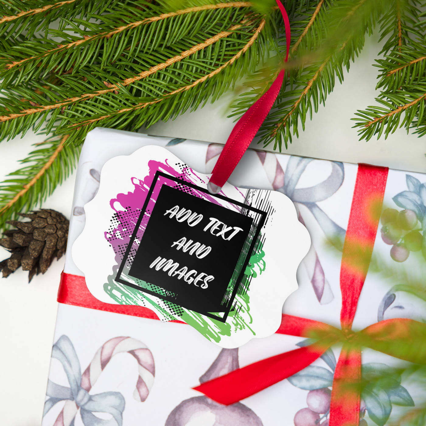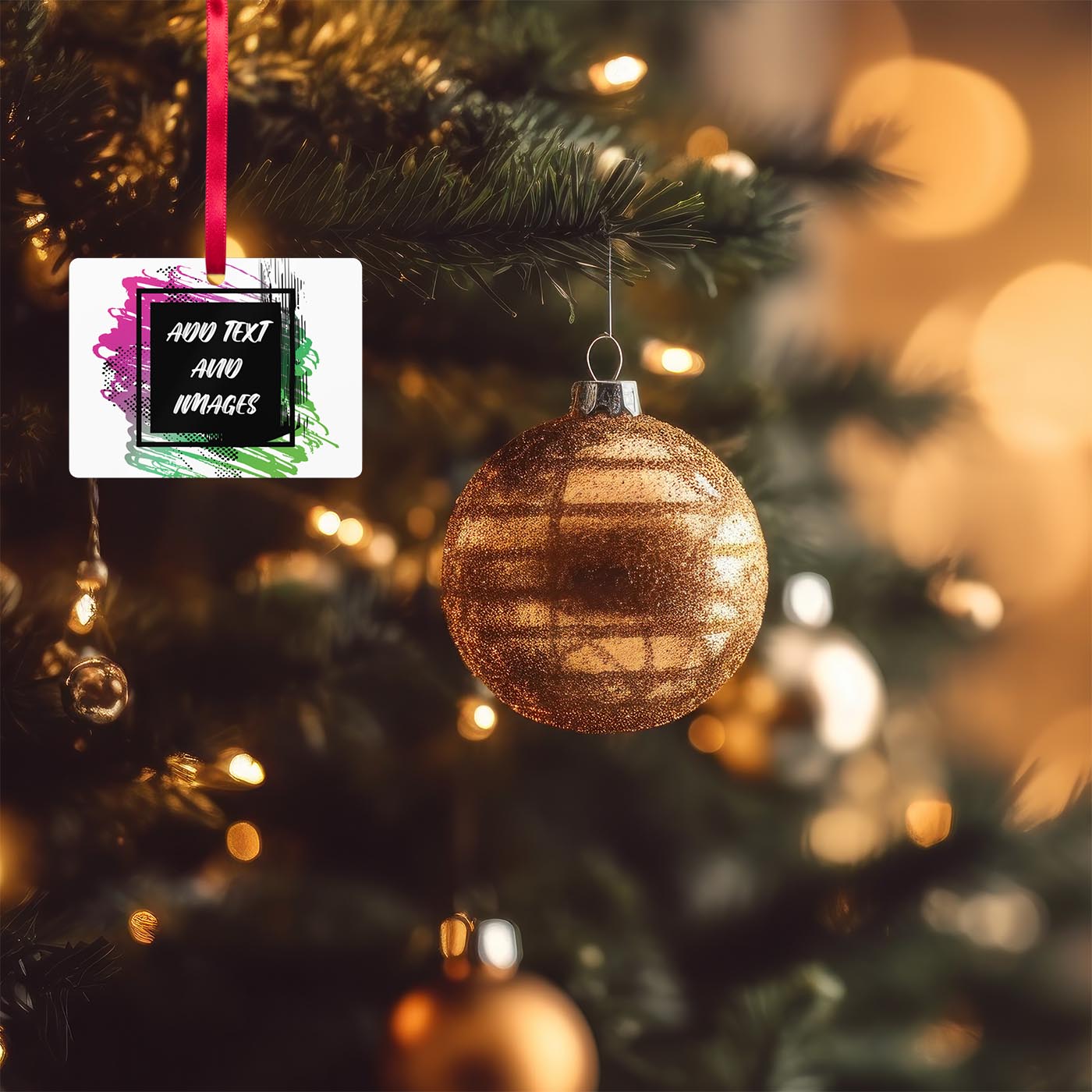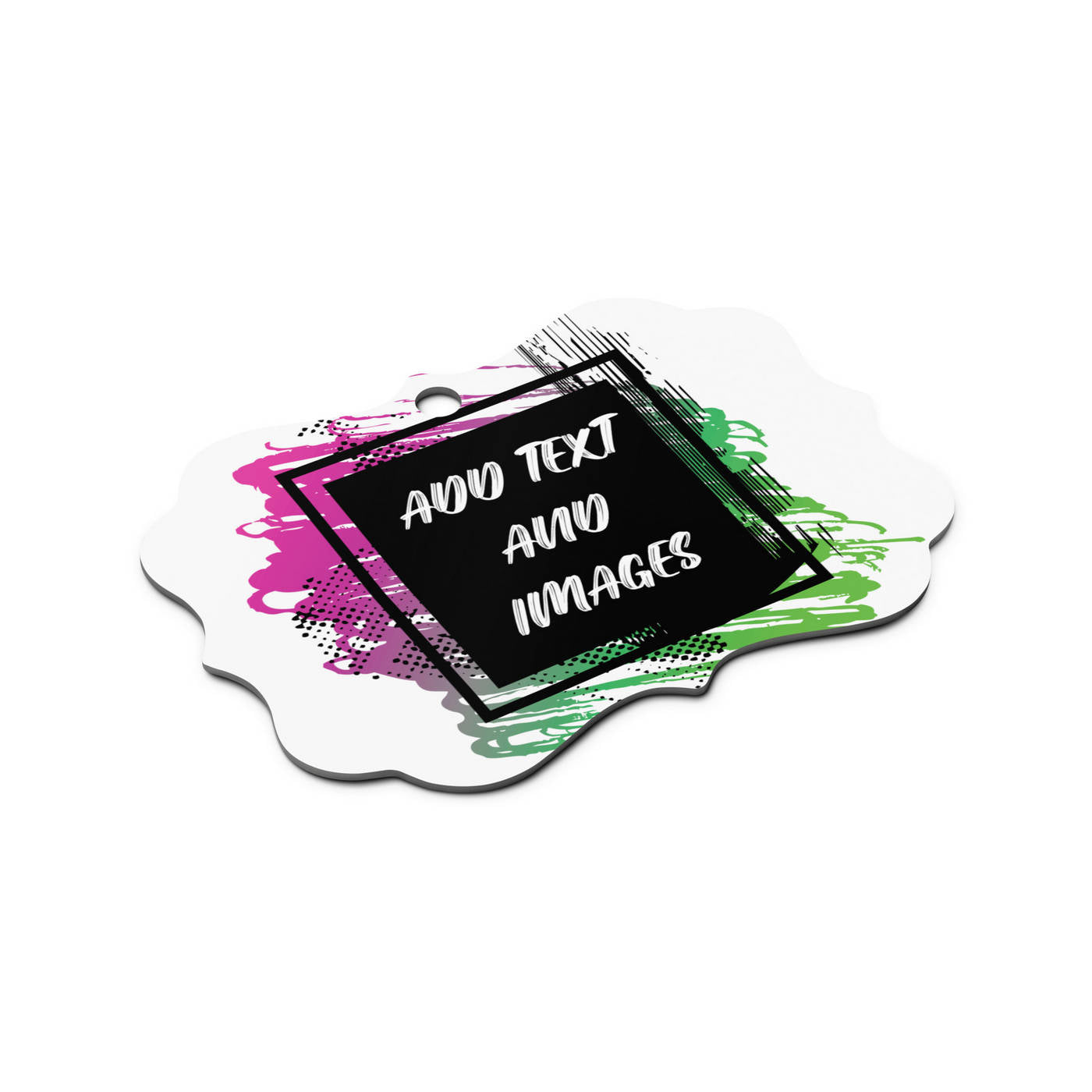 Designed to keep their shape and bright colors year after year, each ornament shows lively double-sided prints and includes a red ribbon for effortless hanging. Pick from four playful shapes—Rectangle, Scalloped, Pet Paw, and Tag—or mix and match them all to create a joyful collection.