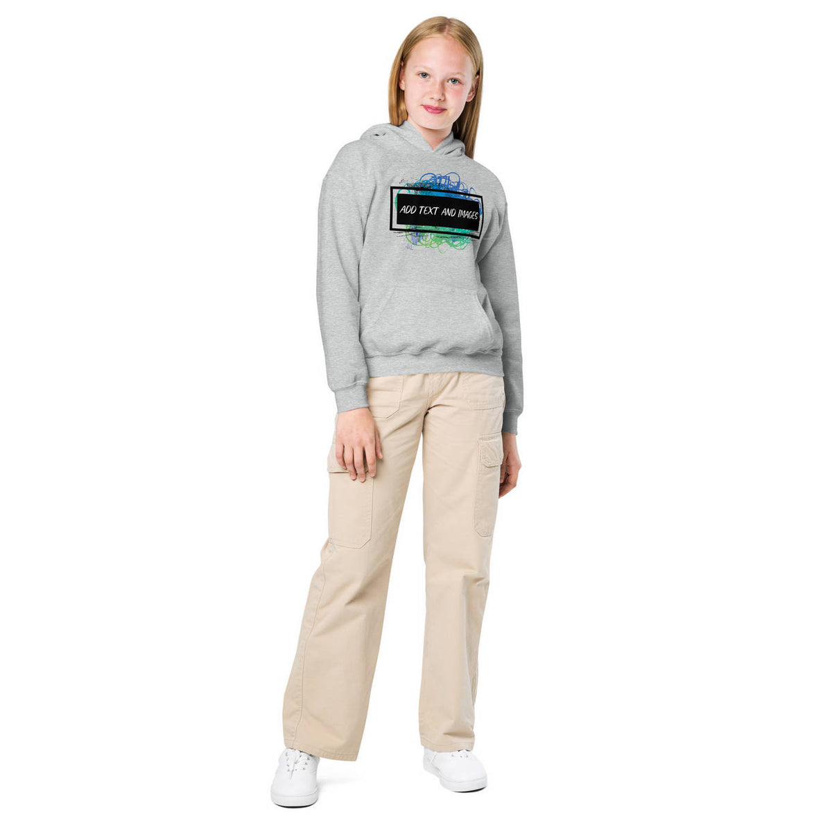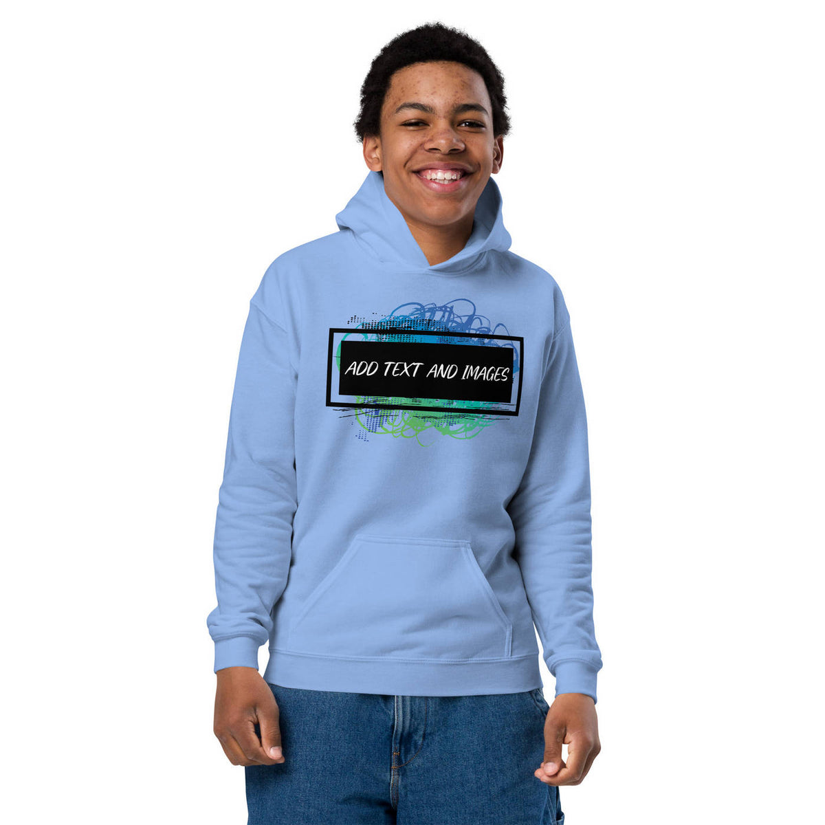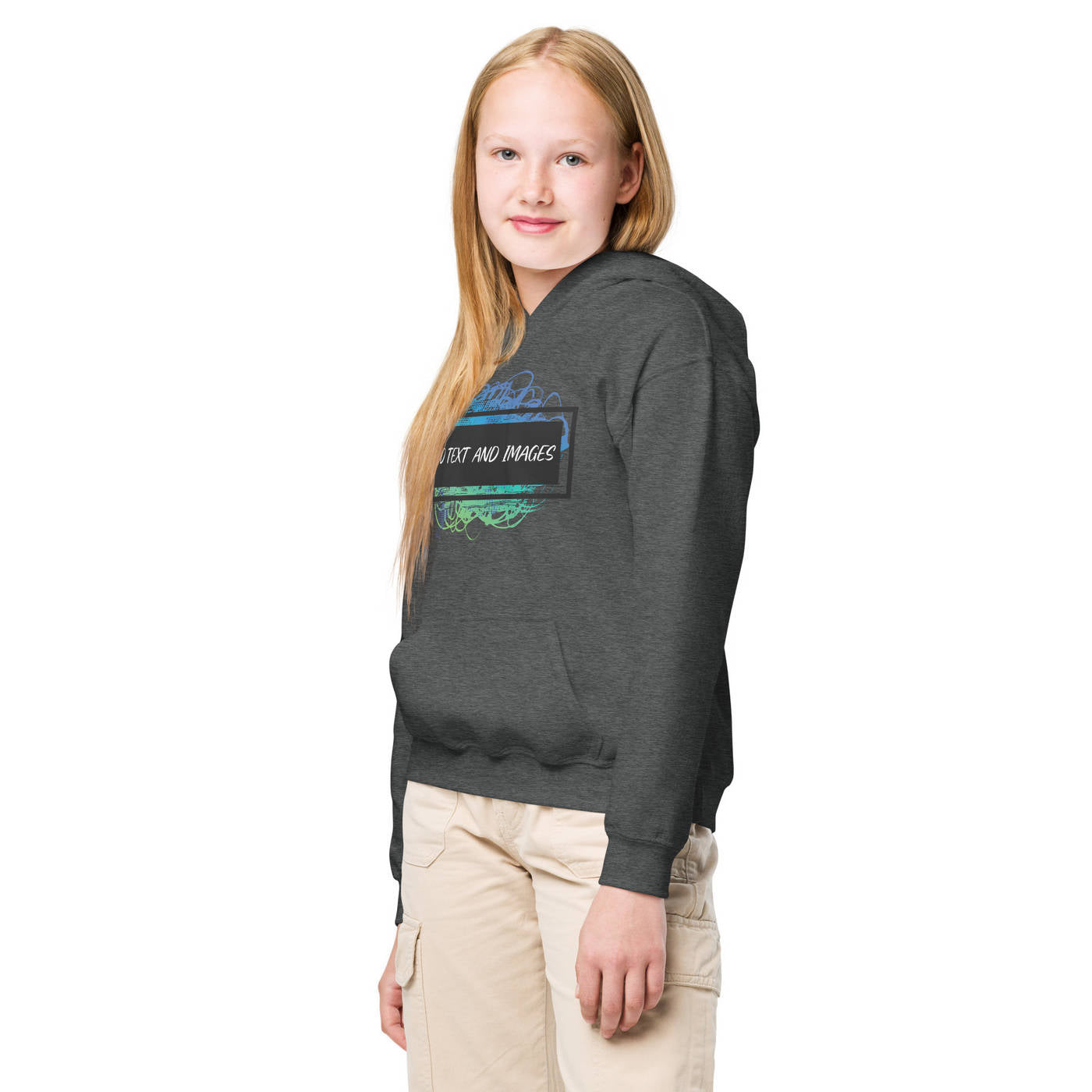 Design the perfect hoodie for your kiddo that you know they'll love! Add the perfect graphics and text to this Youth Heavy Blend™ Hooded Sweatshirt and watch them love to wear it.