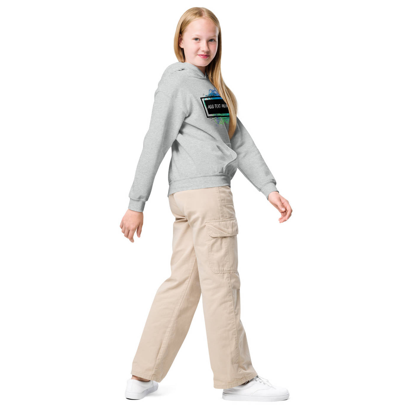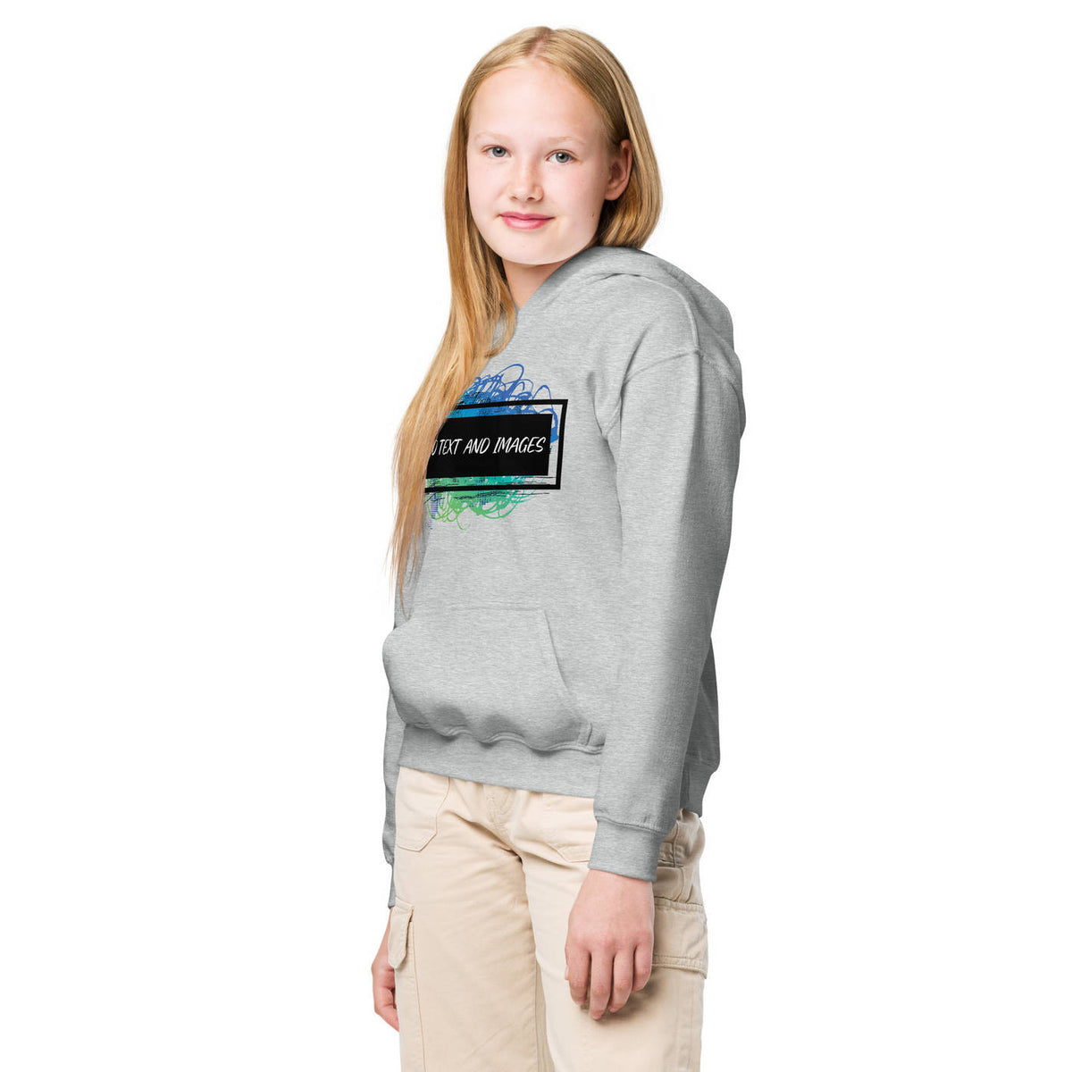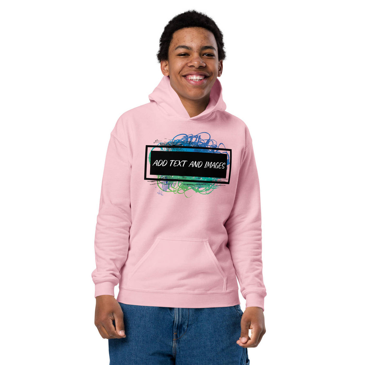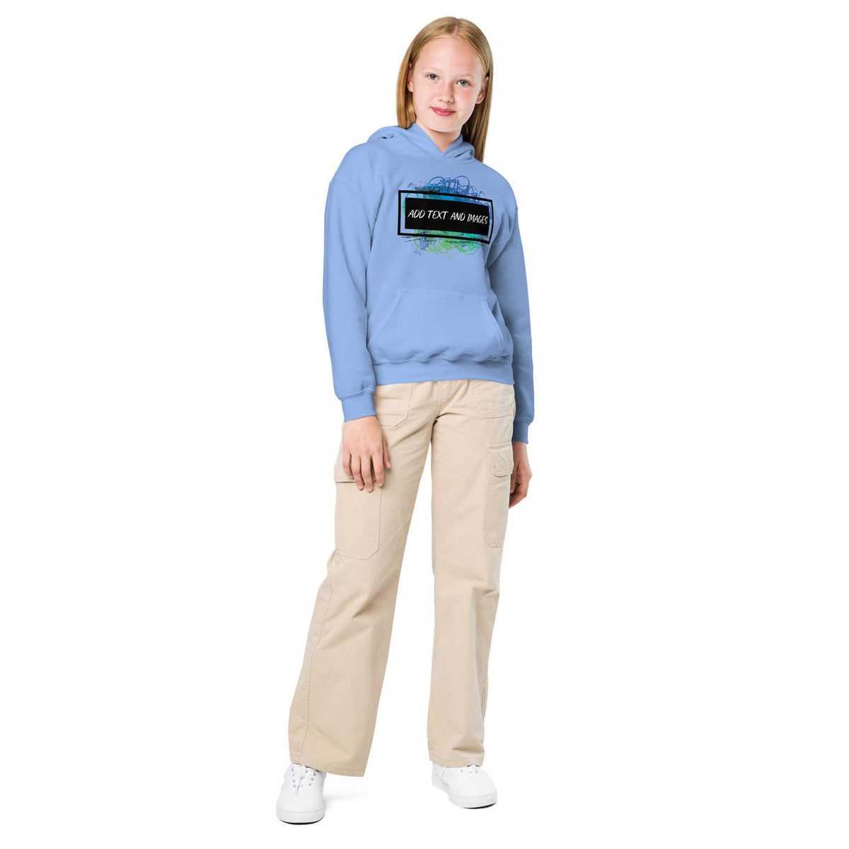 Design the perfect hoodie for your kiddo that you know they'll love! Add the perfect graphics and text to this Youth Heavy Blend™ Hooded Sweatshirt and watch them love to wear it.