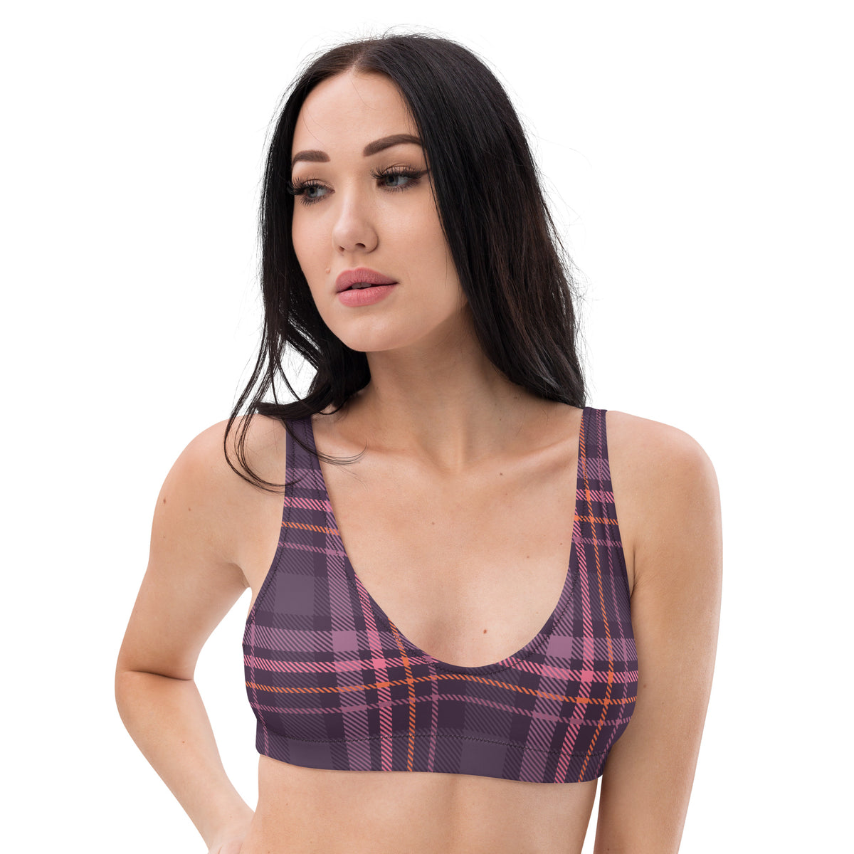 Women's Padded Bikini Top - Purple Purple Pink Plaid